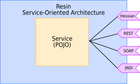 Writing a service for the Resin remoting as a plain-old Java object (POJO) eliminates protocol dependencies and simplifies service testing. With the Resin remoting, services can be written as plain-old Java objects (POJOs) and made available to many different protocols using simple configuration changes.